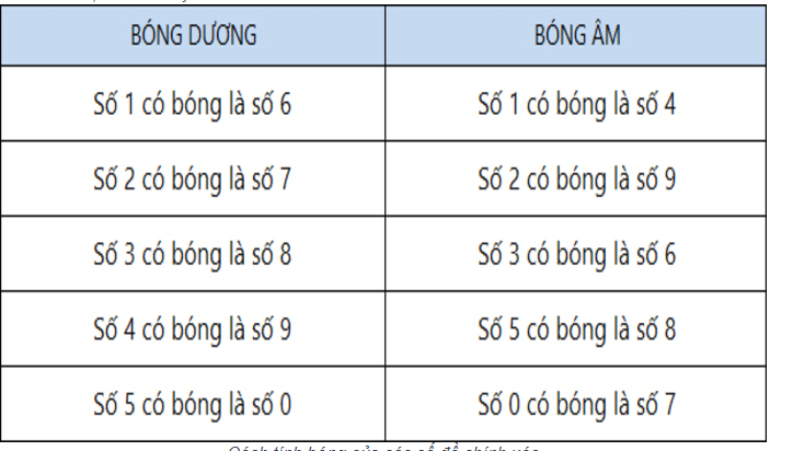 Ví dụ: ta có số 35 thì bóng âm là 68, số 15 có bóng âm là 48.