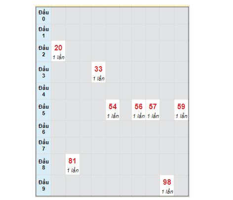 - 2 số cuối GBD : 27 – 87 – 05 – 34 – 82 – 42 – 54
