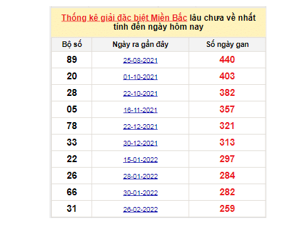 - Chạm gan: 2 (44 ngày chưa ra), 4 (10 ngày khan), 9 (9 ngày chưa ra).